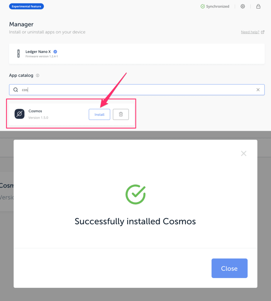 これでLedgerへのCosmosアプリのインストールが完了です。