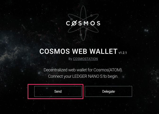 次にCosmosウォレットを作成します。こちらにアクセスしてSendをクリック。