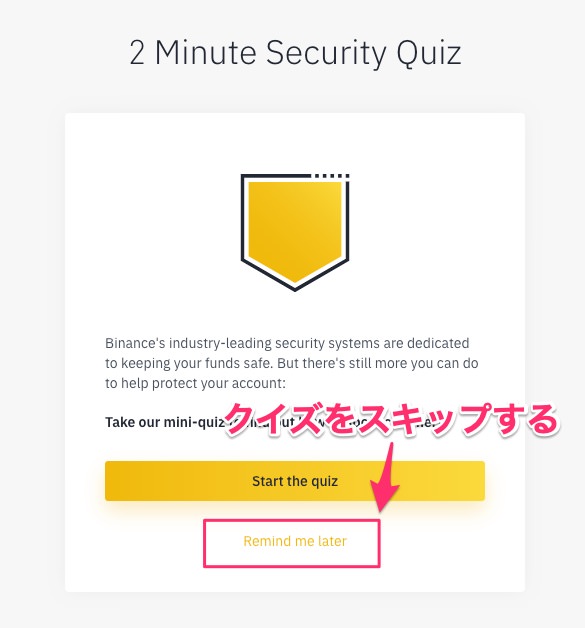 クイズは全て英語なのでここでは「Remaind me later(後で通知する)」をクリックしてスキップしましょう。