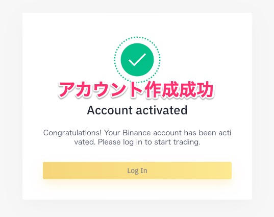 クリックすると「Account activated(アカウント登録)」という画面が表示されます。