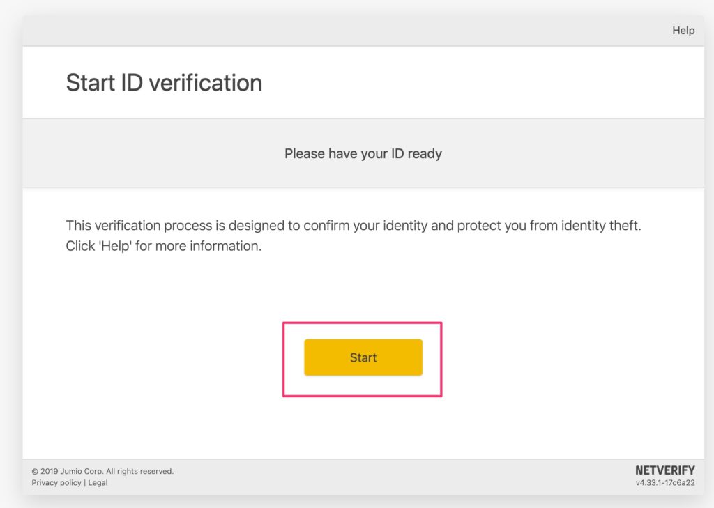 本人確認を開始する画面が出てきます。「Start」をクリック。