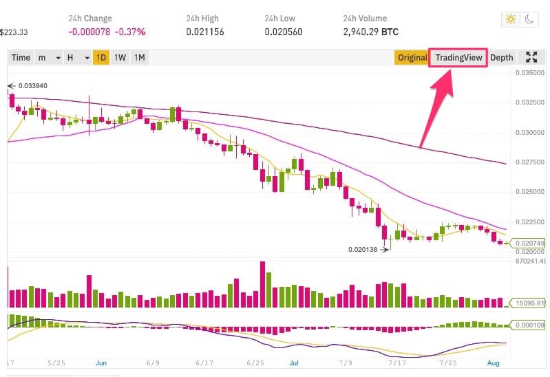 チャート表示です。最初は「Original」という項目になっていますが「TradingView」にするのが使いやすくてオススメです。