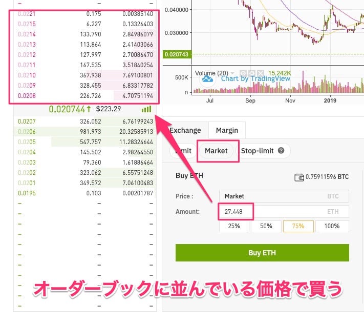 もしオーダーブックに並んでいる注文が少ない場合、非常に不利な価格で成立してしまう場合があります。