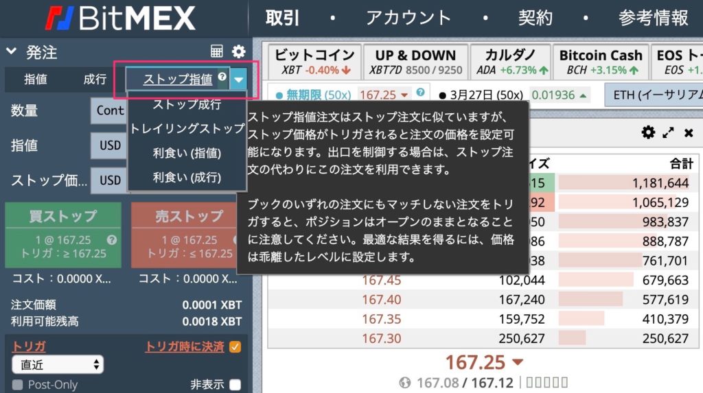 ここからはBitMEXの少し特殊な注文方法を紹介していきます。