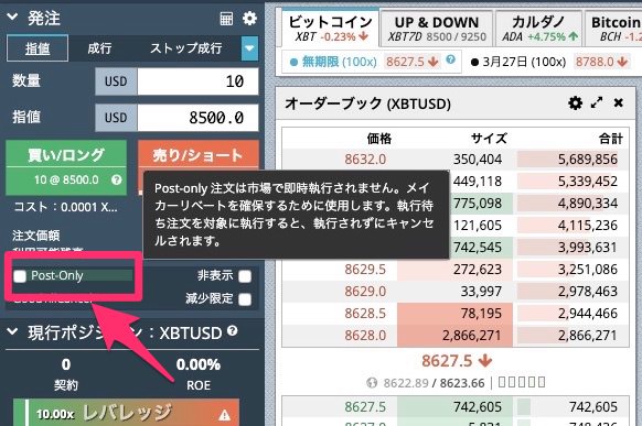 また指値注文とセットで覚えておきたい機能が「Post-Only」です。