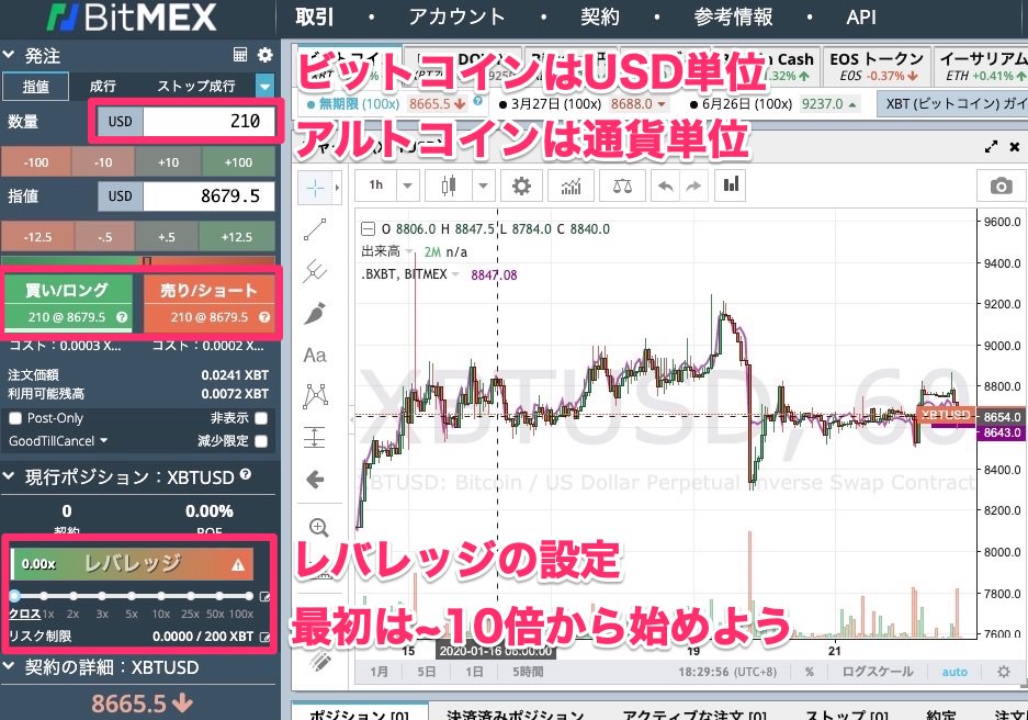 BitMEXで注文や決済をする方法を解説していきます。
