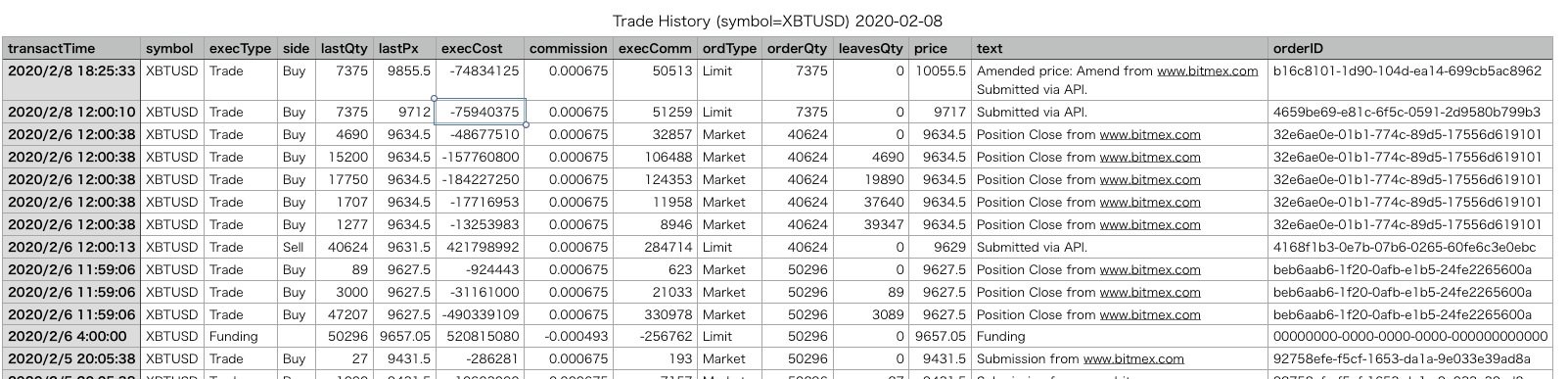 自分が今までBitMEXで支払った手数料は「アカウント」→「取引履歴」から確認できます。