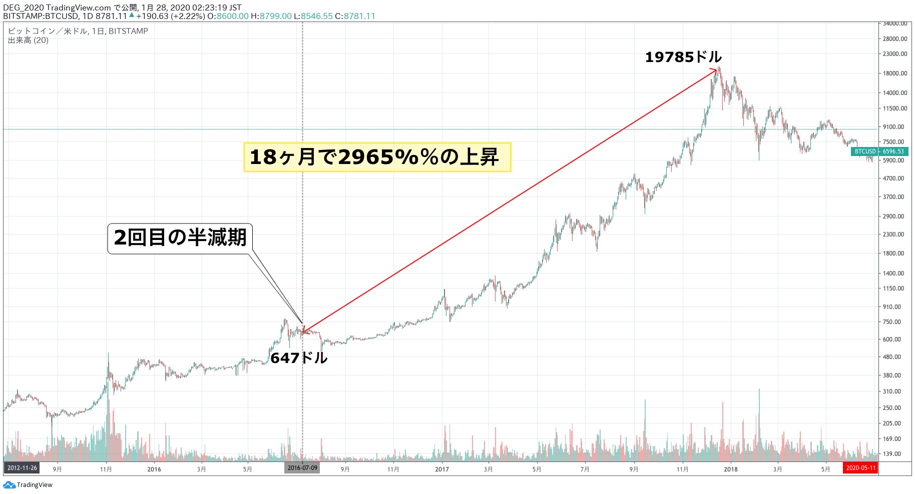 2回目のビットコイン半減期後、5ヶ月で高騰