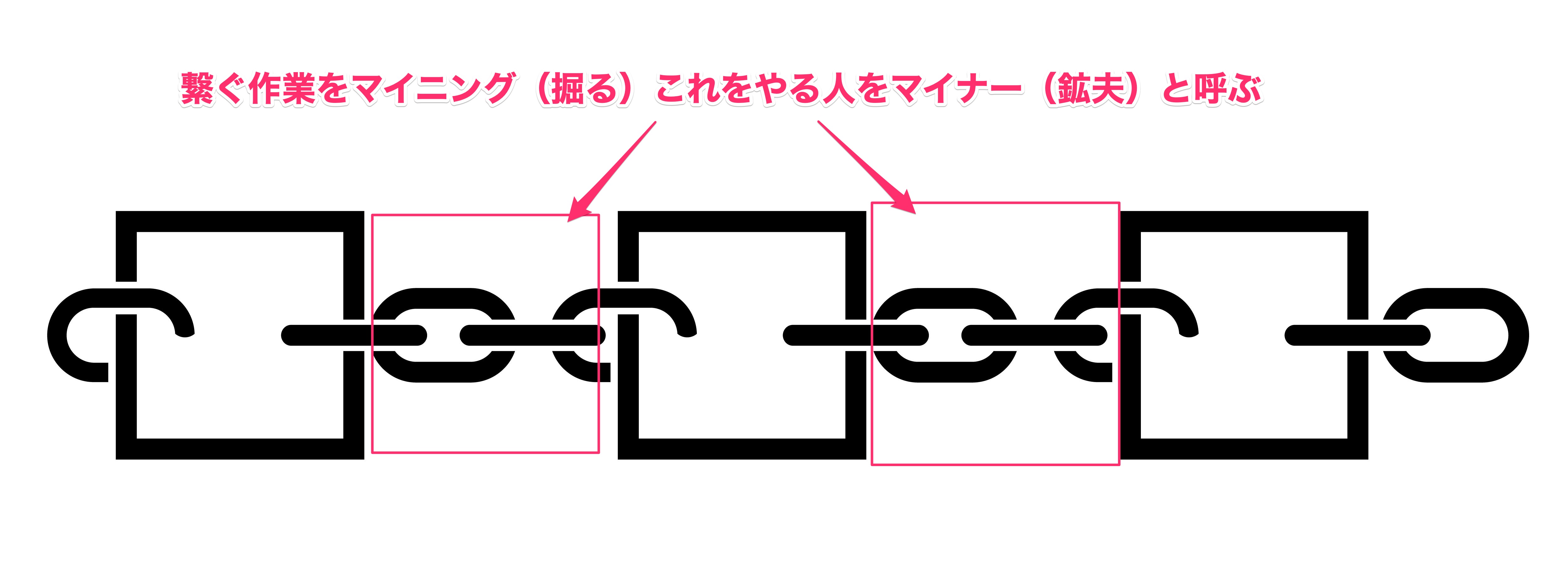 この作業を「マイニング」と言います。そしてマイニングする人たちを「マイナー」と呼びます。