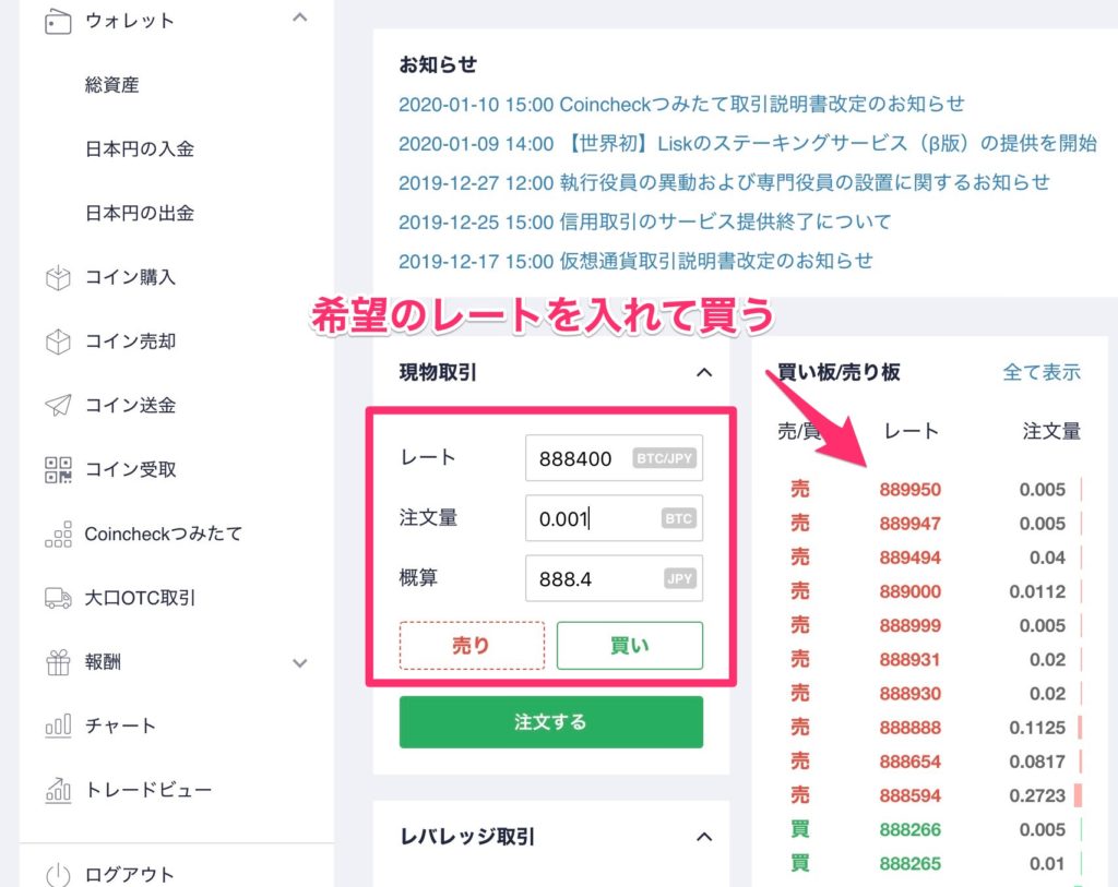 コインチェックからハガキが届いたら準備は完了、実際にビットコインを購入していきます。