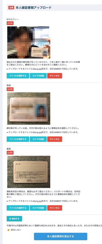 - 本人確認をする(身分証の写真をアップ)