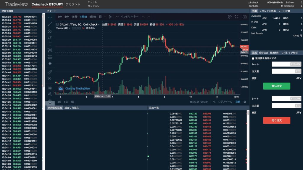 コインチェックでは専用のトレード画面も用意されています。
