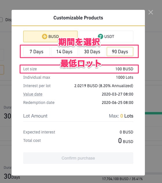 「Confirm Purchase」でレンディングが開始します。