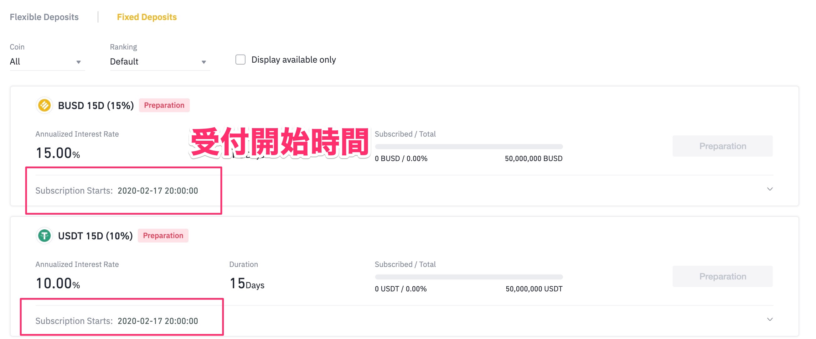 こちらのページが定期レンディング(Fixed Deposits)の一覧になるので、受付開始時間をチェックするようにしましょう。