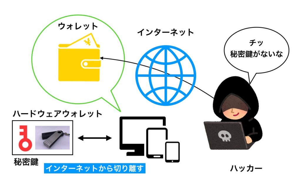 ハードウェアウォレットは秘密鍵をネットから切り離すツール