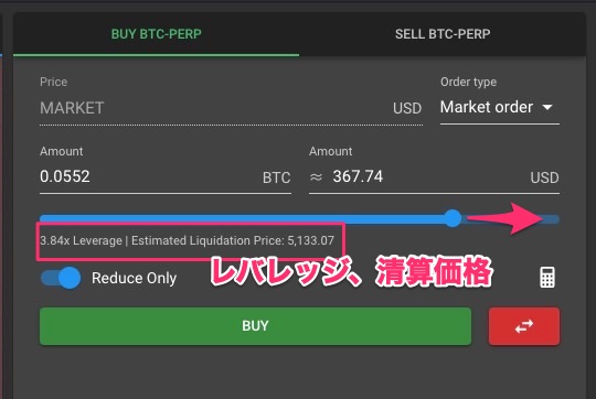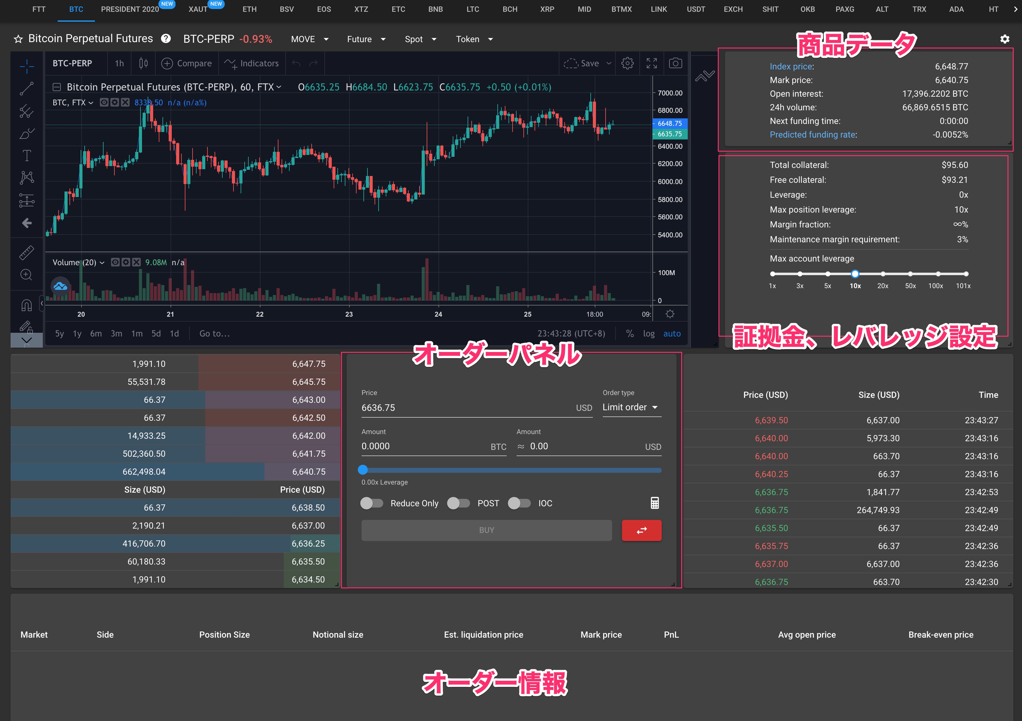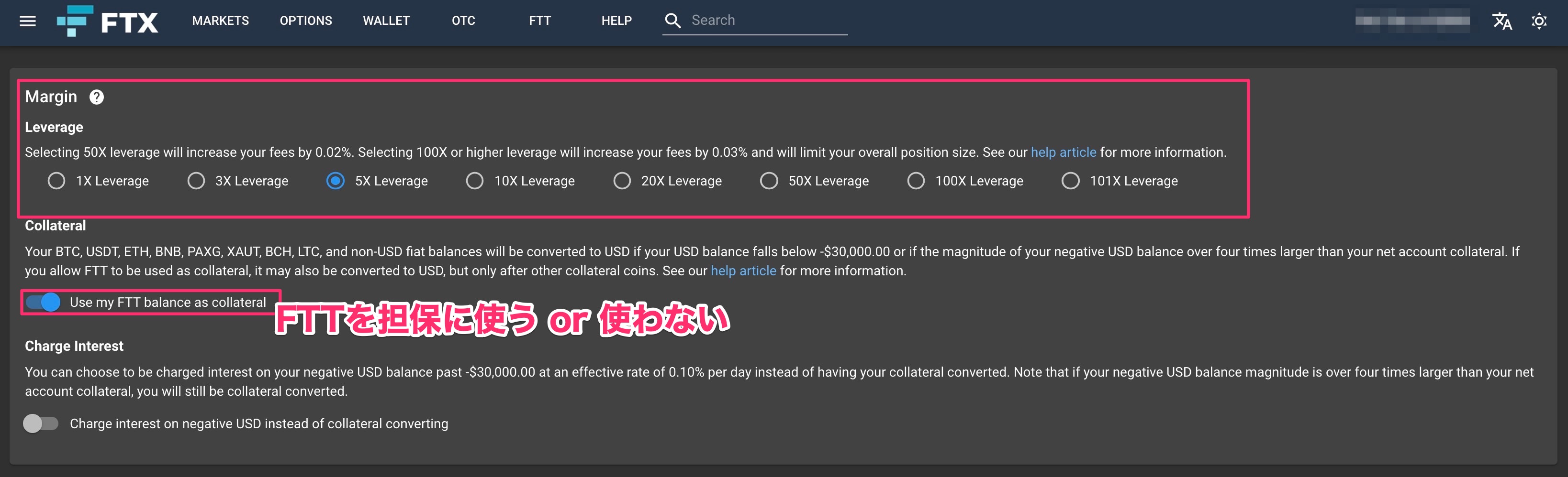 FTXのレバレッジ設定、トレード画面についての解説です。