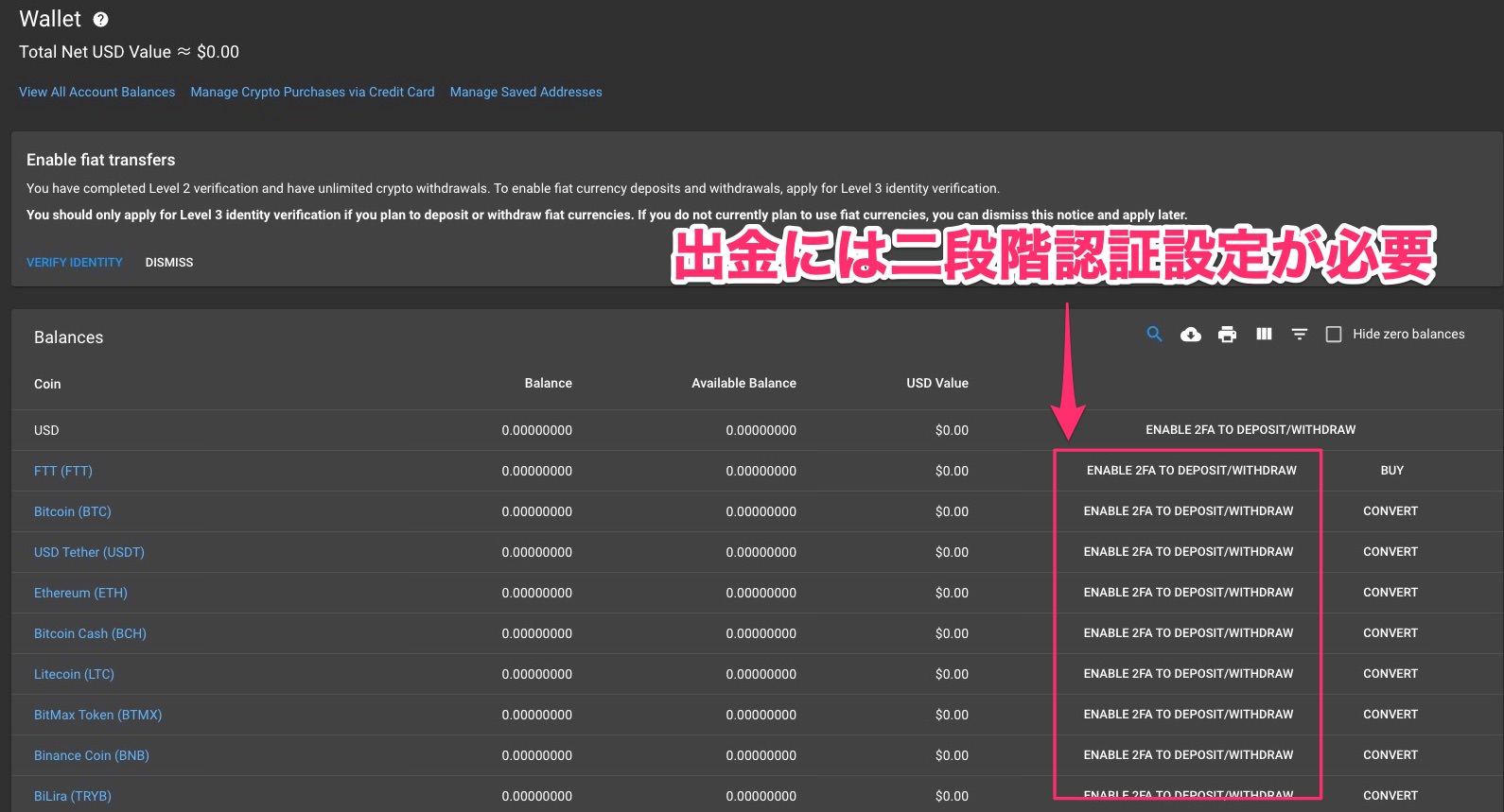 大体の取引所が1.出金申請 2.メール認証 3.運営のチェック 4.出金のプロセスですが、FTXは出金申請のみです。