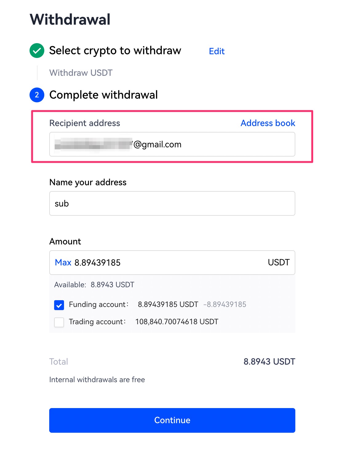 既存のOKXアカウントと、今回作成した新規アカウントをお互い信用リストに入れておけば即座に資金を転送できます。新規アカウントも10BTC/24hの範囲で送金できるので、実用性の面では十分かなと思います。