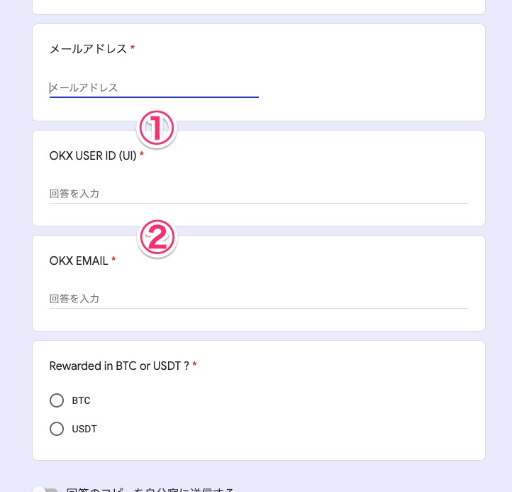 こちらの申し込みフォームからエントリーしてください。必要事項はOKXアカウントのIDとアカウント作成時に使用したメールアドレスの2つです。またこのサイト管理人であるDEGのOKXリンクからアカウントを作成していることが条件になります。(協賛なので)