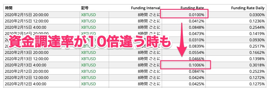 - インデックスBTC価格 < BitMEXのBTC価格 → 資金調達率上昇