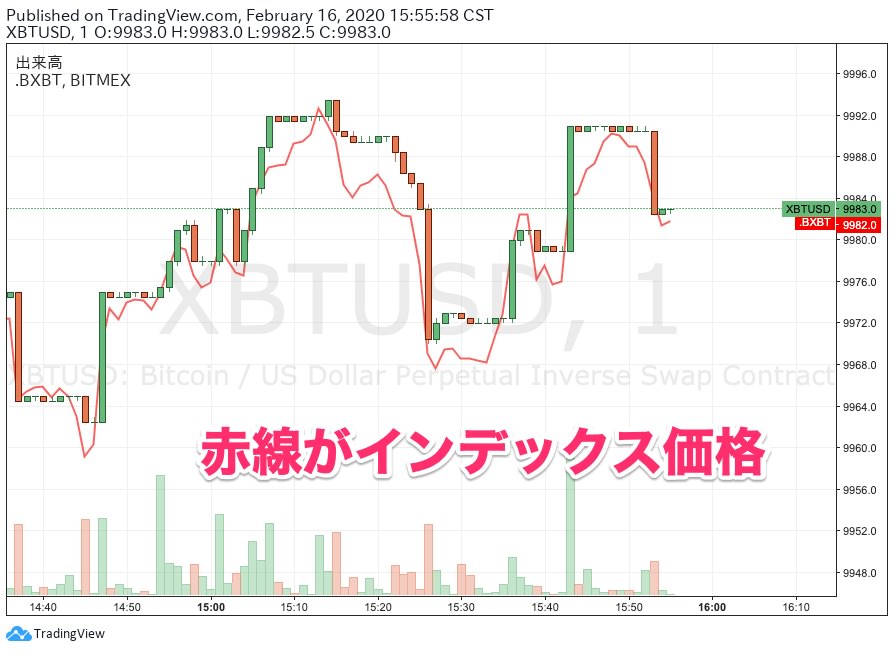 - インデックスBTC価格 > BitMEXのBTC価格 → 資金調達率下降