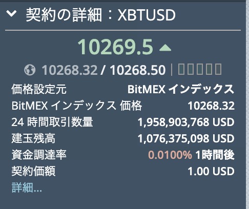 このインデックス価格を市場のビットコイン価格として参照しBitMEX上のビットコイン価格が乖離しすぎていた場合は資金調達率が変動します。