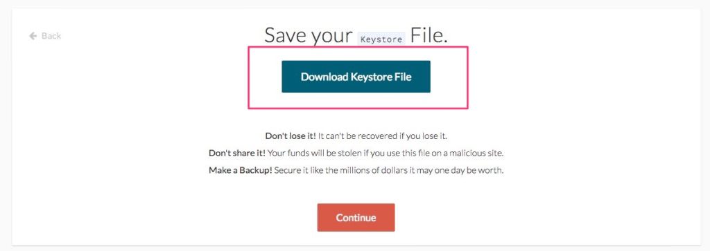 パスワードを設定するとKeystoreファイルがダウンロードできます。