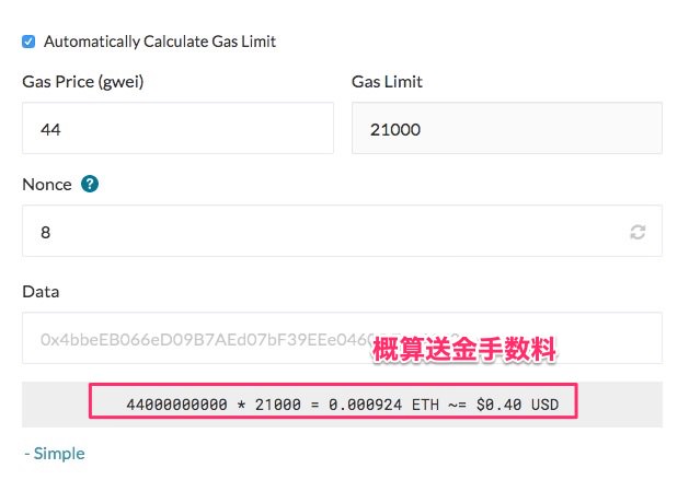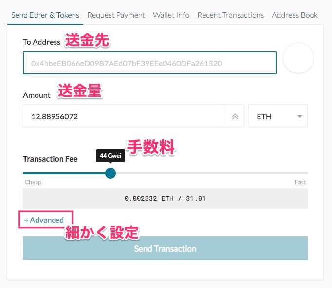 「Advanced」をクリックすると、Gas PriceやGas Limitを直接入力できます。