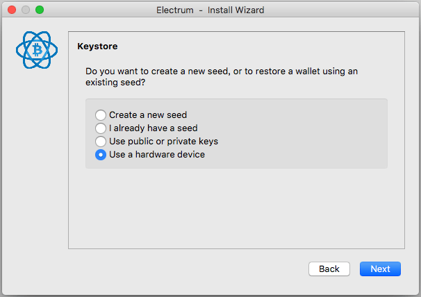 Keystoreの選択で「Use a hardware device」を選択します。