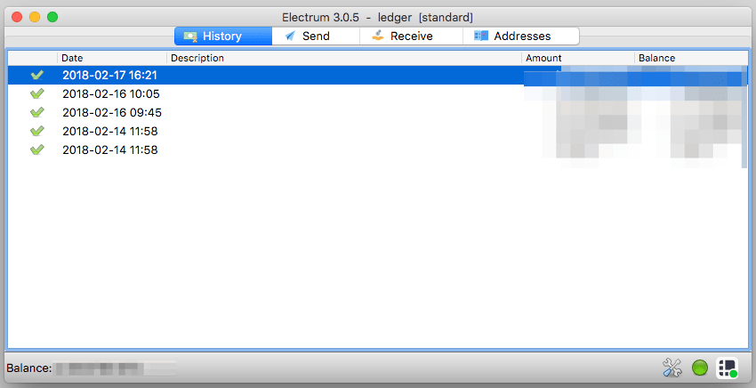 ElectrumはLegerのアプリと同様に日本円表示や受信アドレスの複数作成など、遜色ない使い勝手ですよ。