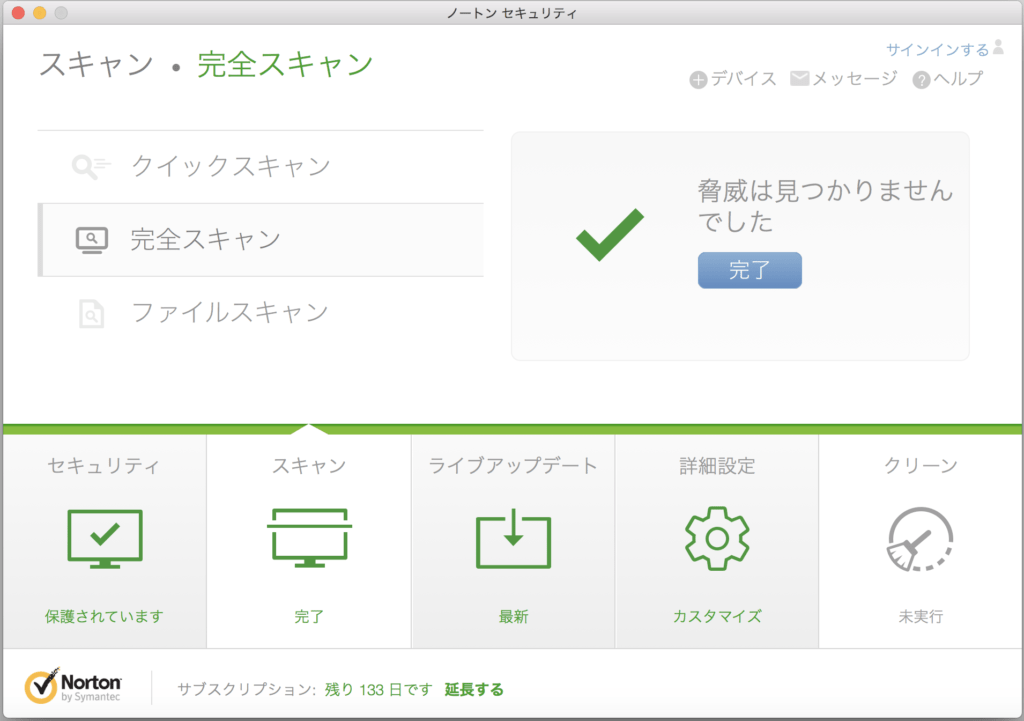 今回のMacにはウィルス対策として以前からノートンを導入してあります。