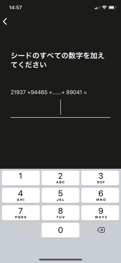 先程の数字のリカバリフレーズを全部足した数字をここに入力します。
