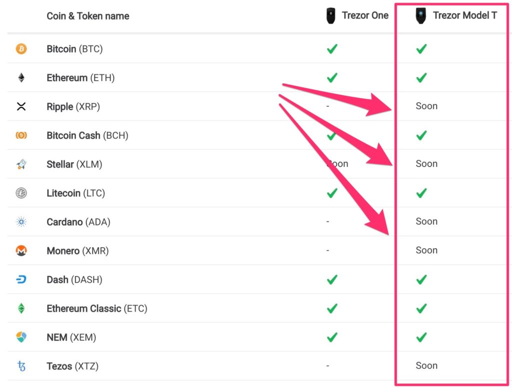 またTREZOR社のハイエンドモデルなので、機能拡張・対応通貨の拡充をいち早く受けられるというメリットもあります。